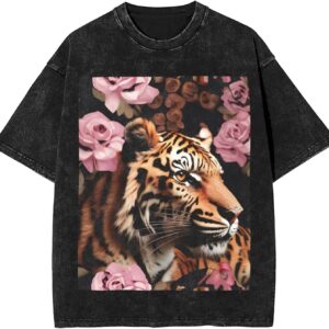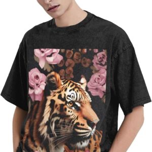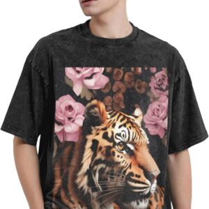 Crafted from high-quality cotton, the animal Tiger Leopard Print Rose Flower print heavyweight t-shirts for men vintage clothes guarantee both comfort and breathability, ensuring you feel great no matter what the day brings. The vintage-inspired design features a faded, well-worn look that’s stylishly timeless, perfect for those who appreciate a touch of retro flair. The drop-shoulder detail and round neckline combine to provide a laid-back fit, making these shirts ideal for both casual wear and relaxed outdoor events. These t-shirts promise a stylish and effortless look every time.