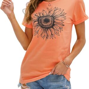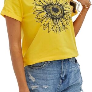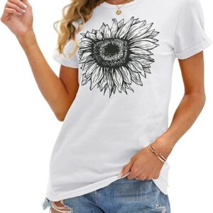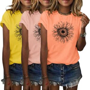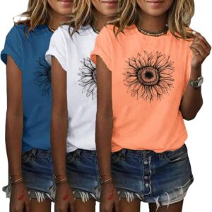 COMBEME 3 Pack Womens Graphic Tees Short Sleeve Crew Neck Sunflower Print T Shirts Loose Cute Summer Tops