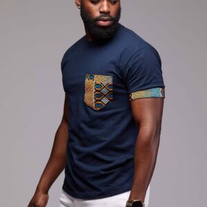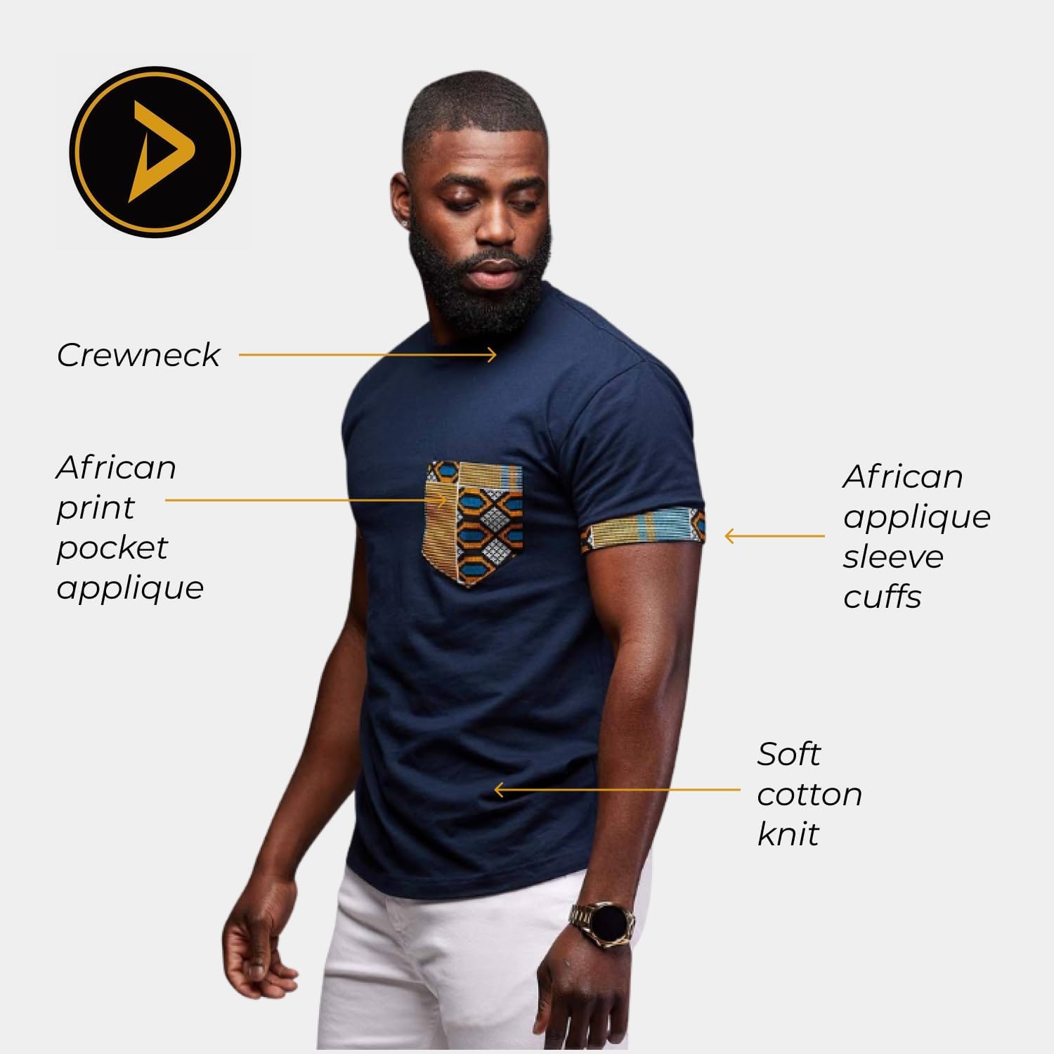 D’IYANU | Seun Men’s African Print T-Shirt with Patterned Pocket | Short Sleeve Premium Comfortable and Traditional