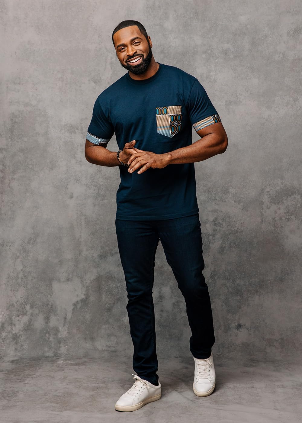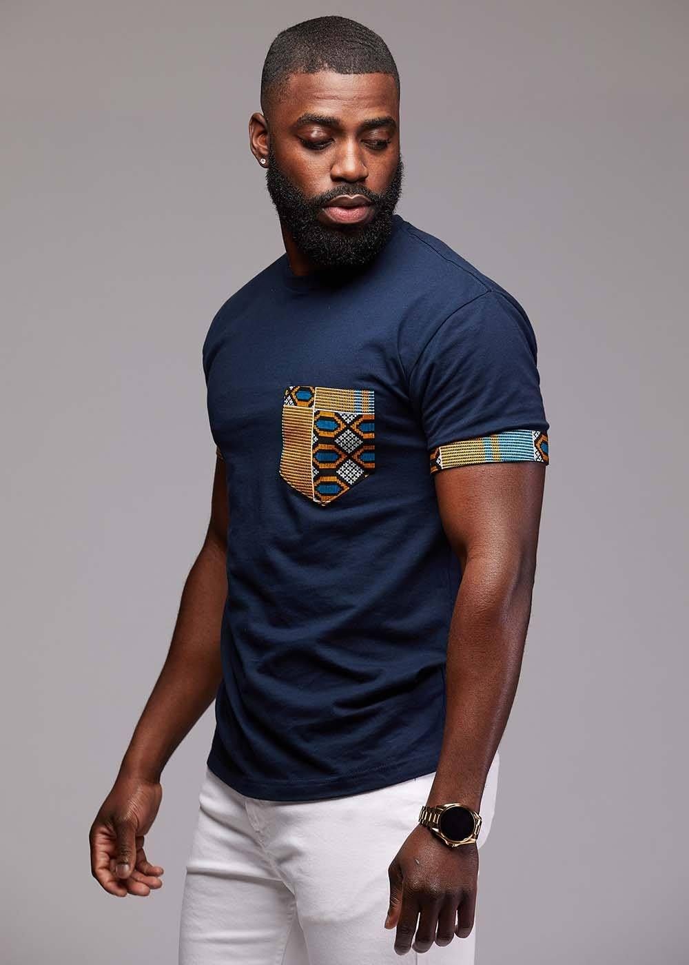 D'IYANU | Seun Men's African Print T-Shirt with Patterned Pocket | Short Sleeve Premium Comfortable and Traditional
