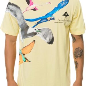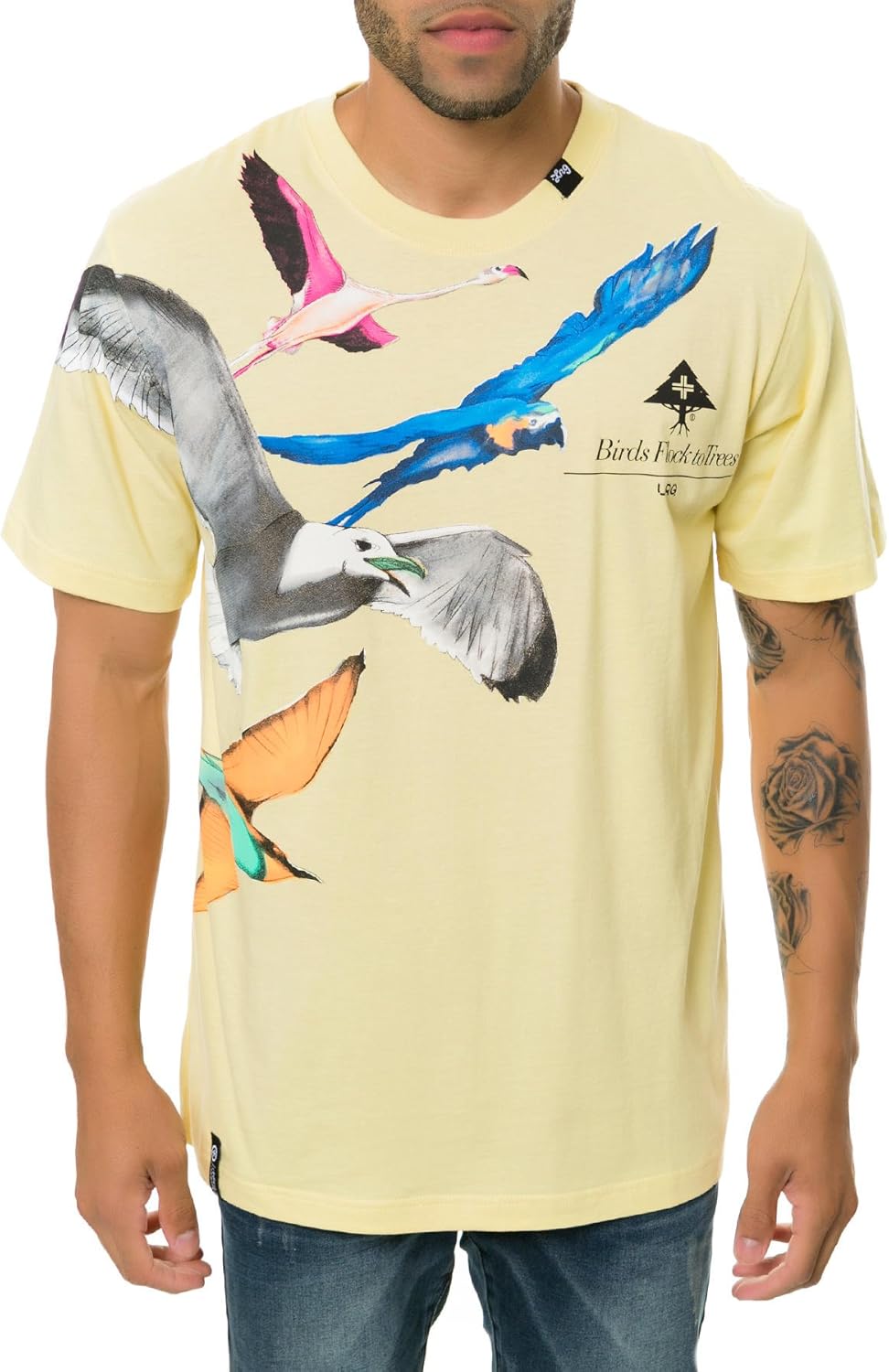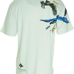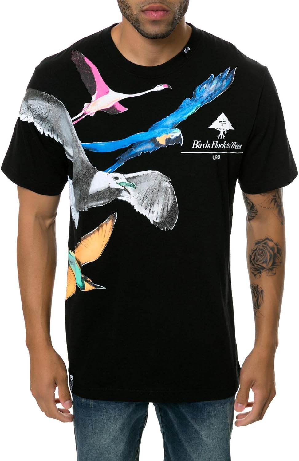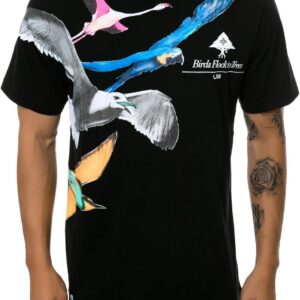 The birds flock to trees tee is constructed of jersey featuring a contrasting pattern with custom print expertly rendered on front panel and rear panel with custom tag on neckline and hem.