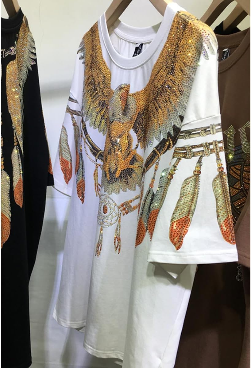 Plus Size Graphic Tees for Women Eagle Rhinestone Printed Tops Loose Fit Mens T Shirts Short Sleeve Oversized Streetwear