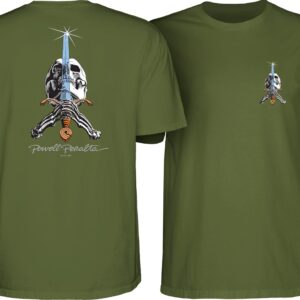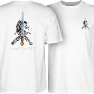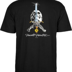 The Rodriguez "Skull & Sword" Deck was the first pro signature deck graphic produced by Powell Peralta. The graphic was conceived by Ray and illustrated by V.C. Johnson with art direction from George Powell in 1979.
