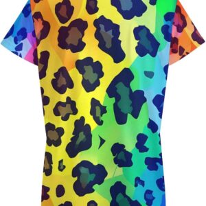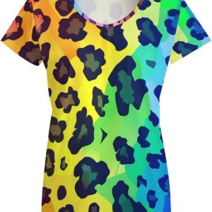 Rainbow Leopard Print Womens V Neck Short Sleeve T Shirts Summer Tops Tees Fashion Outfits Clothes