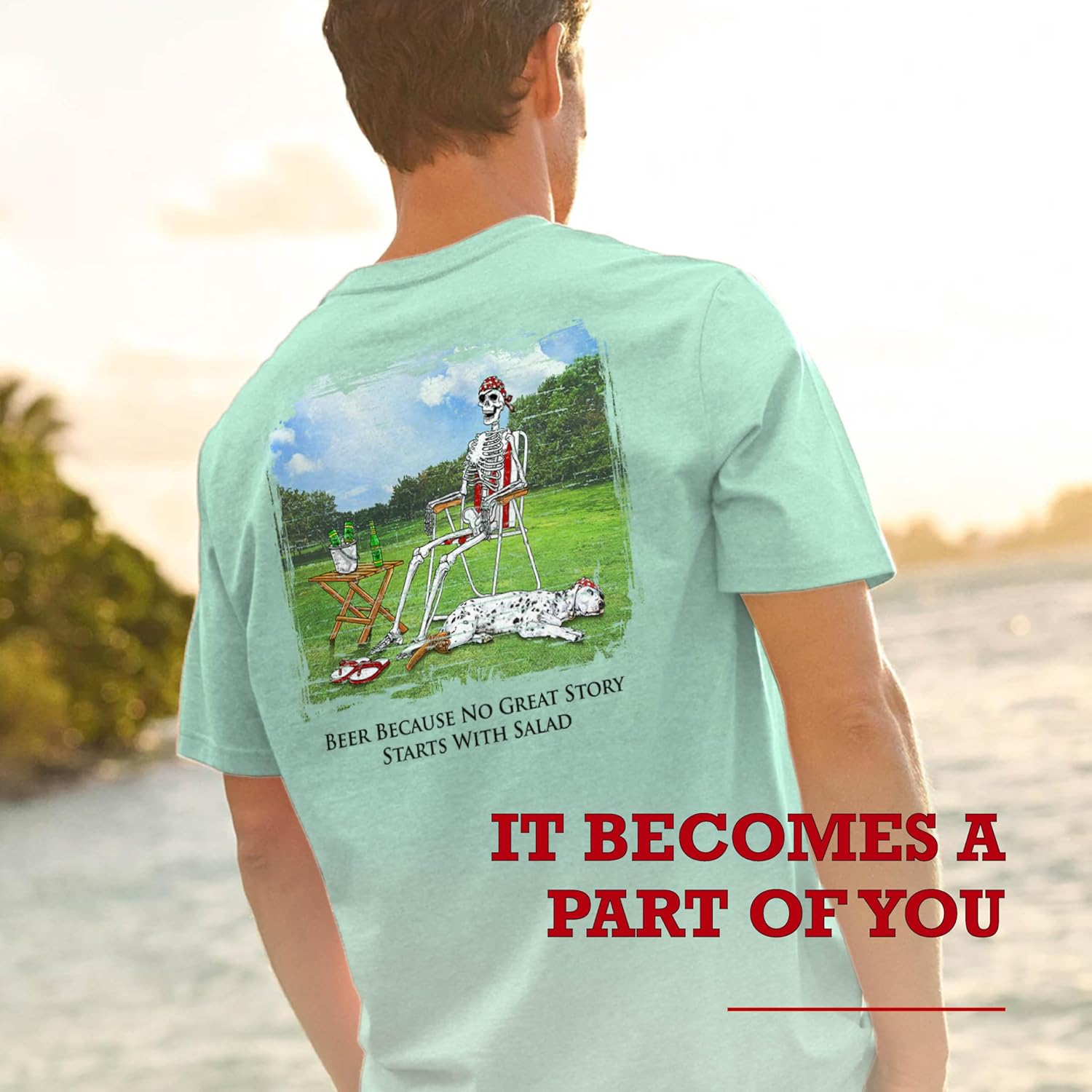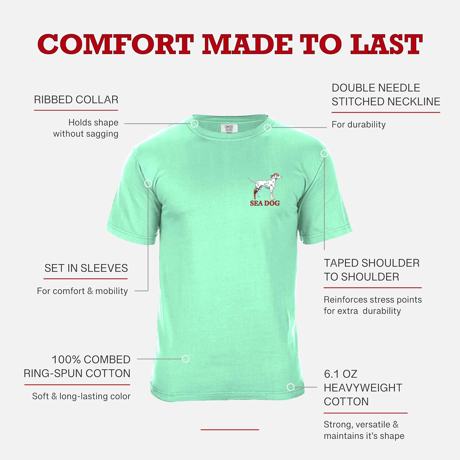 SEA DOG Vintage Graphic T-Shirt Garment Dyed 100% Ringspun Cotton, Relaxed Fit, Printed in USA, No Great Story Starts w Salad