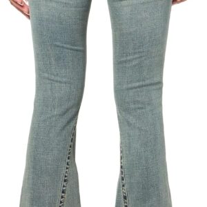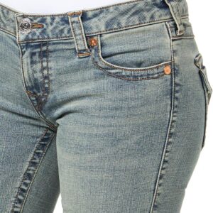 True Religion Women’s Joey Low Rise Flare Jeans with Flap Pockets. These jeans blend vintage-inspired flair with contemporary design, making them an essential addition to your wardrobe. The low rise fit sits comfortably on the hips, flattering your figure while providing the perfect base for a variety of tops.