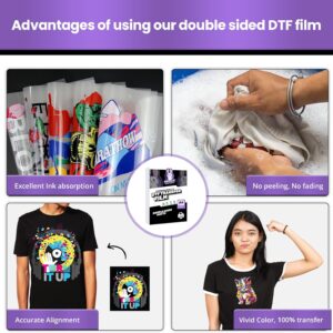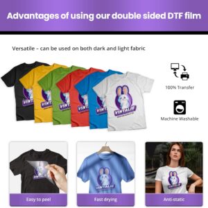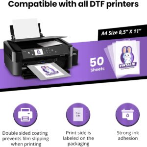 Vintalie DTF Transfer Film \u2013 A4 (8.5\u201Dx11\u201D)50 Sheets Premium Matte Double Sided DTF Film PET Transfer Paper Direct to T Shirts